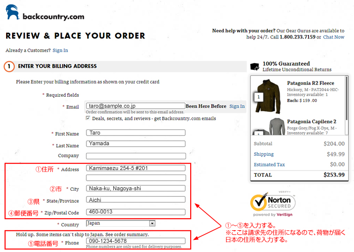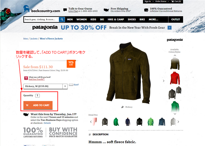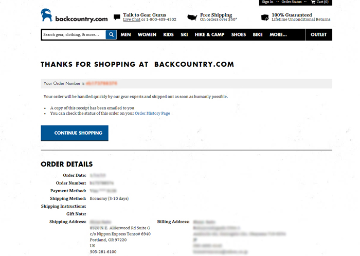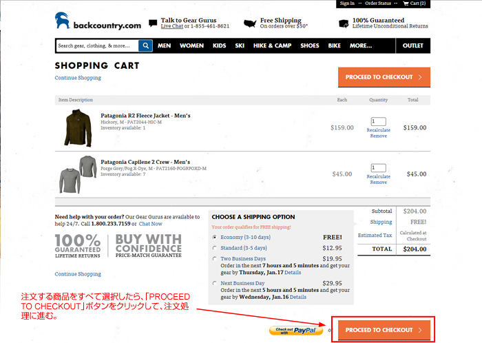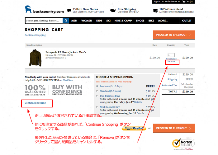 ABackcountry.comで商品注文/支払い