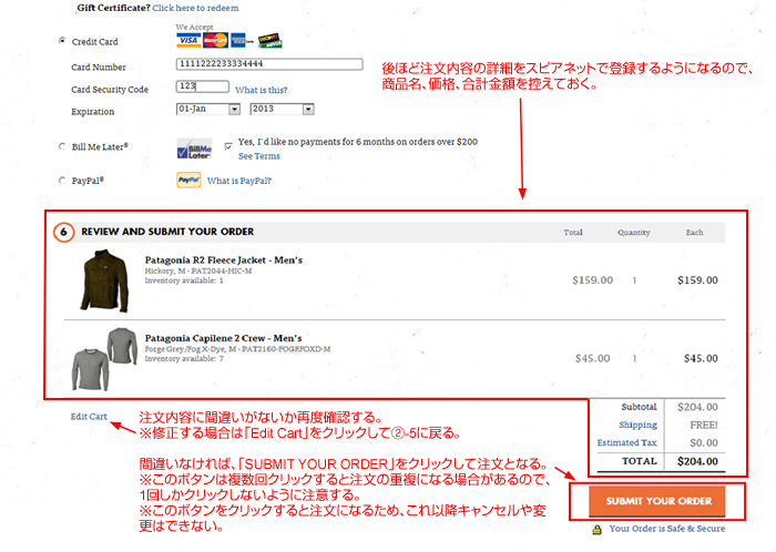 間違いが有る場合は、「Edit Cart」をクリックしてA-5に戻る。