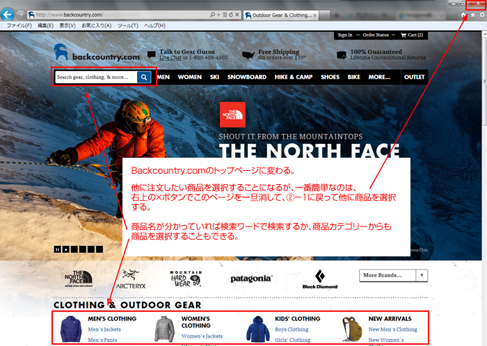 Backcountry.comのトップページに戻る。