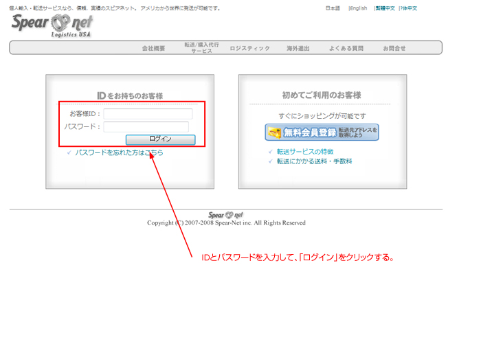 スピアネットでサイトでログインする。
